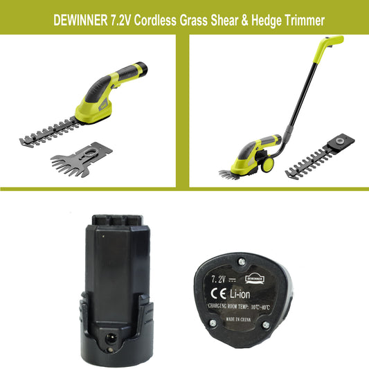 DEWINNER 2in1 Grass Shear & Hedge Trimmer with 7.2V Rechargeable Lithium-Ion Battery, Edging and Shrub Shear, 2 Interchangeable Blades, Lightweight, Garden Cutting Edge Trimmer, Pruner - Handheld
