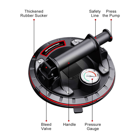 DEWINNER Electric Vacuum Suction Cup, Max 480lbs Load Capacity, 8 Inch Battery Powered Electric Vacuum Lifting Suction Glass Lifters, Hand-held Vacuum Lifter with Pressure Gauge for Glass, Granite, Drywall