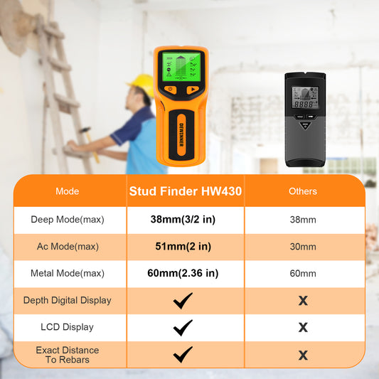 DEWINNER 5-in-1 wall detector wall metal detector with LCD screen post finder, wall scanner for locating metals, wooden dowels, electrical AC cable