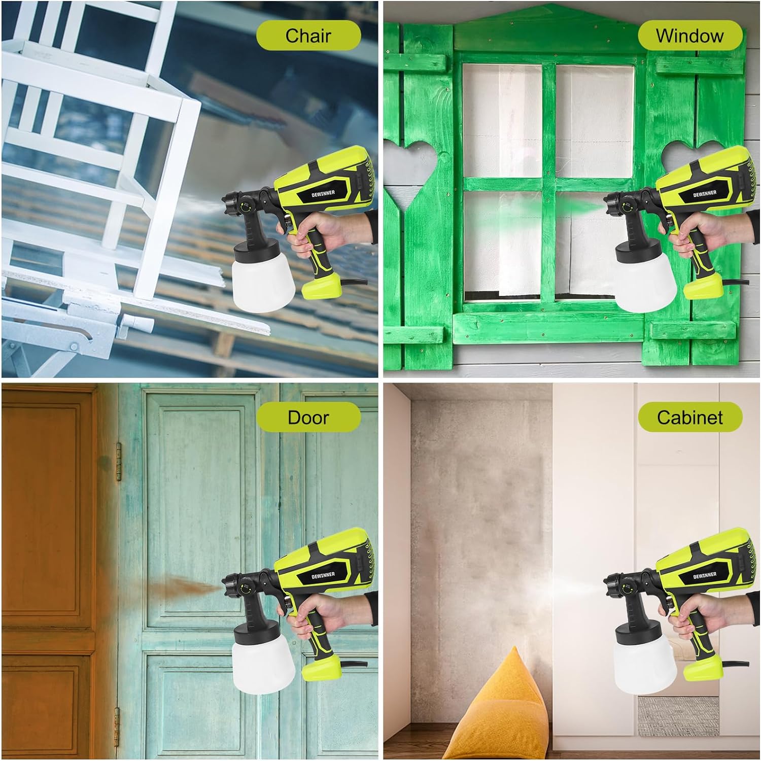 • 【Wide Range of Uses】The paint spray is equipped with 3 nozzles and can be used to spray windows, doors, walls, fences, decorative panels, headboards, cabinets and furniture.